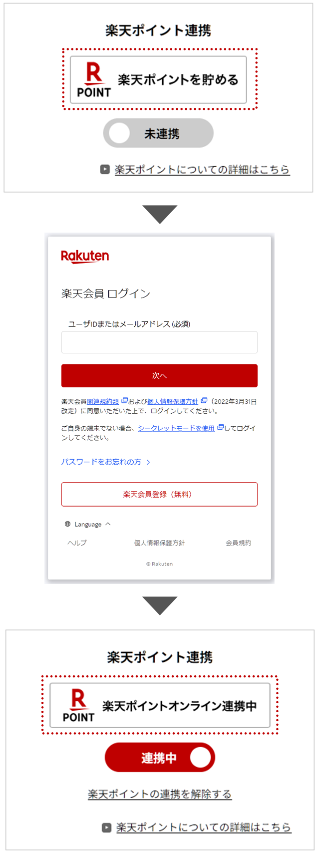 お願いいたします。 - (3)「楽天ポイントオンライン連携中」