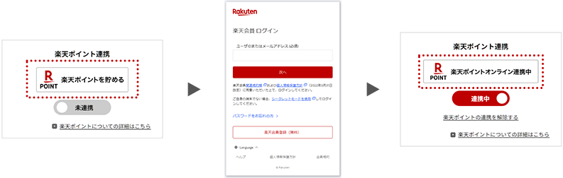 楽天ポイントを貯めたい楽天IDでログインをお願いいたします。 - (3)「楽天ポイントオンライン連携中」と表示されていれば、連携完了です。